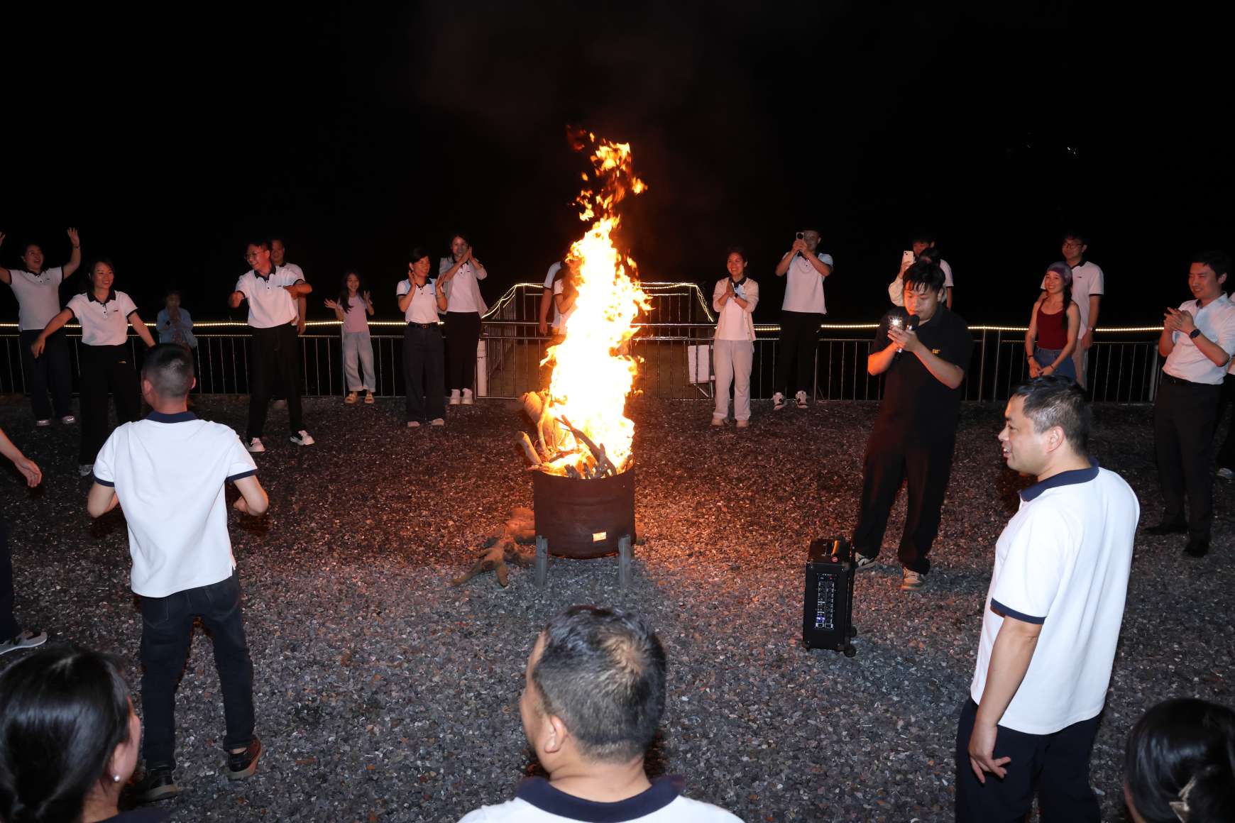 Без иерархических различий и ведомственных границ все собрались вокруг костра, болтая о повседневной жизни и работе, растворяя обычную формальность и дистанцию в испепеляющем тепле. С каждым кусочком горячей еды и взрывом смеха сердца сближались в непринужденной и уютной атмосфере.、